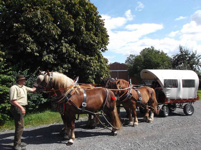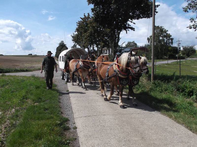 Ein weiteres Dienstleistungsfeld vom Mobilen Sägewerk Follner ist das Holzrücken sowie Planwagen- und Kutschfahrten mit zwei Kaltblutpferden. Wir haben einen Bretone sowie ein Rheinisch-Deutsches Kaltblut.